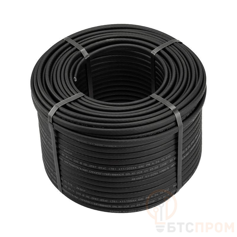 Кабель греющий саморег. SRL30-2CR UV с УФ-защитой экранир. 30Вт/м 1.0кв.мм/60м (уп.100м) Rexant 51-0235