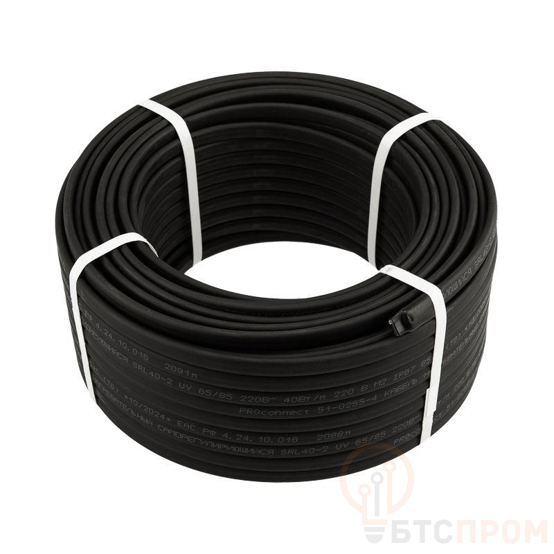 Кабель греющий саморег. SRL40-2 UV с УФ-защитой неэкранир. 40Вт/м 0.9кв.мм/40м (уп.50м) PROCONNECT 51-0232