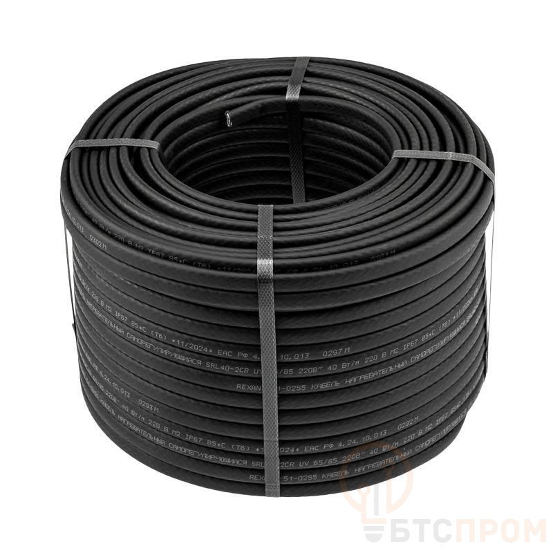 Кабель греющий саморег. SRL40-2CR UV с УФ-защитой экранир. 40Вт/м 1.0кв.мм/45м (уп.100м) Rexant 51-0237