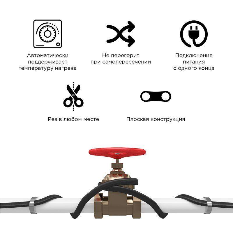 Саморегулируемый греющий кабель SRL16-2 (16Вт/1м) / SRF16-2CR (16Вт/1м) / SRL24-2 (24Вт/1м) /SRL24-2CR (24Вт/1м)/ SRL30-2 (30Вт/1м) Proconnect Применение Саморегулируемый греющий кабель предназначен для защиты от замерзания бытовых трубопроводов среднего диаметра, счетчиков воды, вентилей и т.п. Предназначен для устройства на трубопроводах, диаметром не более 150 мм. Длина и мощность электрообогревателя выбирается исходя из длины трубы и толщины. Конструкция Кабель нагревательный саморегулирующийся, меняет собственное тепловыделение в зависимости от внешних условий, благодаря этому систему обогрева трубопроводов можно применять на трубе с разными температурными режимами (часть трубы на улице, часть - в подвале дома) Линейная мощность кабеля составляет не менее 16 Вт/м, 24Вт/м, 30Вт/м соответственно; Устанавливается на трубопровод под теплоизоляцию. Преимущества Низкое потребление электроэнергии. Резка на необходимую длину - Сердечник кабеля состоит из бесконечных параллельных связей частиц углерода, что позволяет отрезать кабель на отрезки требуемой длины. Для герметизации соединения саморегулирующегося греющего кабеля с кабелем питания и герметичной заделки противоположной стороны кабеля используется - Наборы для концевой заделки кабеля REXANT (арт.51-0614/51-0615)