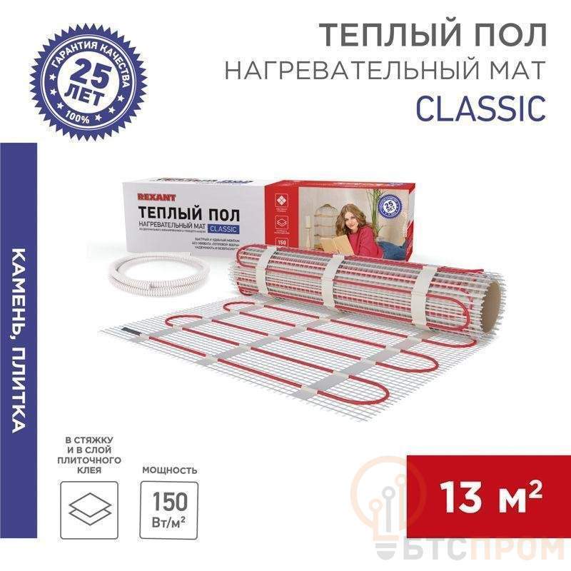 Комплект "Теплый пол" (мат) двухжил. 1950Вт 0.5х26м 13кв.м Classic RNX-13-1950 с экраном Rexant 51-0525-2