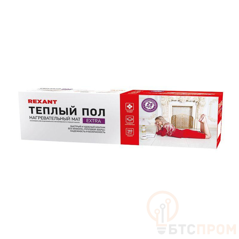 Нагревательный мат REXANT Extra мощностью 720 Вт предназначен для обогрева помещений и обеспечивает равномерное распределение тепла по всей площади. Мощность поверхностного тепловыделения составляет 160 Вт/м2. Принцип действия материала заключается в том, что тонкий кабель, изолированный фторопластом, равномерно распределяет тепло по всей площади поверхности. Алюминиевый экран защищает от электромагнитных помех, а ПВХ-оболочка обеспечивает повышенную теплостойкость и защиту от воздействия внешних факторов. Установка материала происходит быстро и легко, что позволяет сэкономить время и деньги на работах по укладке системы отопления. Заводское пластиковое соединение нагревательного кабеля и кабеля питания обеспечивает долговечную и безопасную эксплуатацию нагревательного мата. В комплект входят: нагревательный мат шириной 0,5 м и гофротрубка для укладки термодатчика.