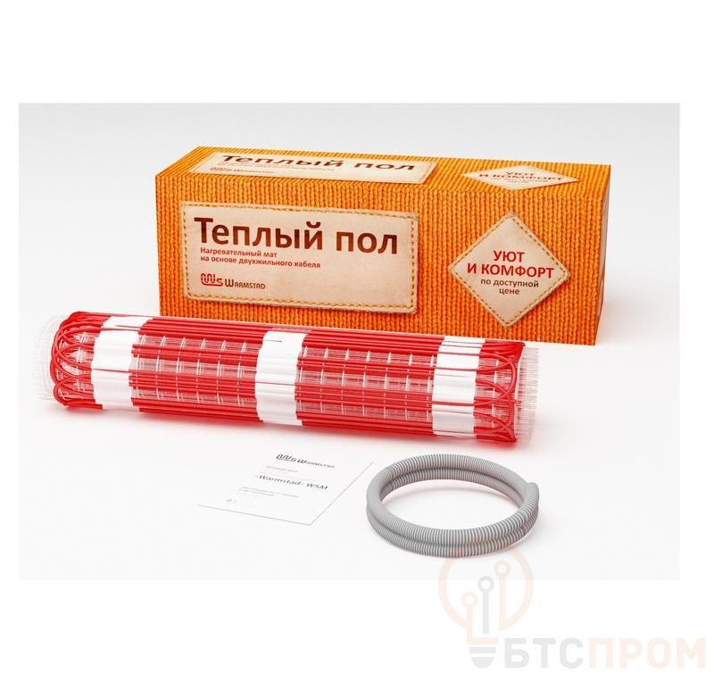 Комплект "Теплый пол" (мат) двужил. 1210Вт 8кв.м Warmstad 2128317 представляет собой набор из нагревательного мата и сопутствующих аксессуаров. Нагревательный мат является нагревательным элементом системы обогрева «теплый пол» и представляет собой секцию нагревательного кабеля, разложенную на сетке и оснащенную соединительной и концевой муфтами и установочным проводом. Монтируется на песчано-цементную стяжку под плиточный клей (для плиточного напольного покрытия) или в тонкий (5-8 мм) слой наливного пола (под любое финишное покрытие). В комплект входит монтажная трубка с заглушкой, инструкция и паспорт. Терморегулятор приобретается отдельно.