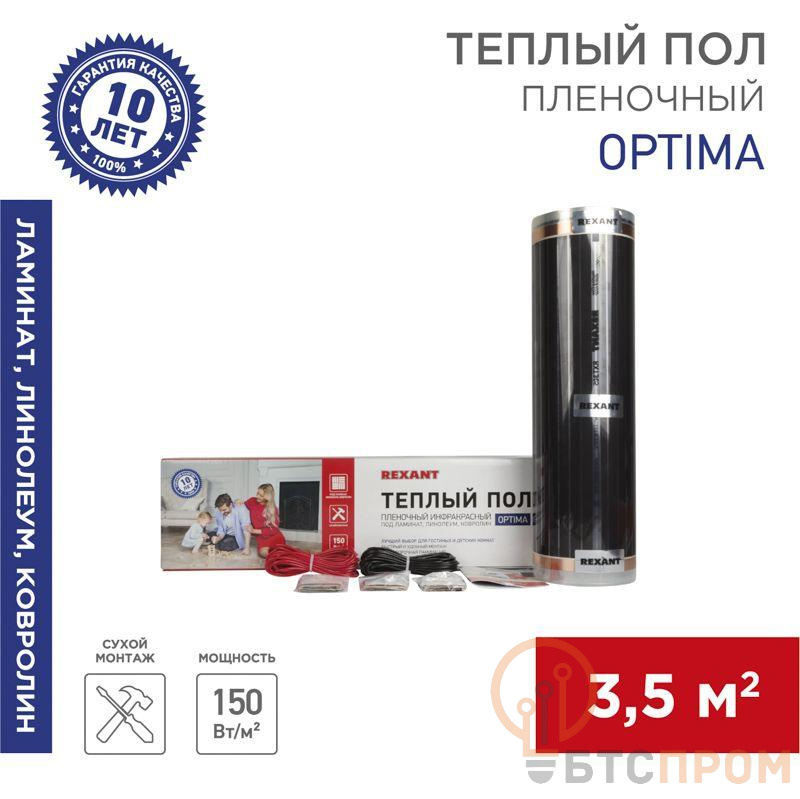 Комплект "Теплый пол" (пленка) Optima 150 3.5кв.м/0.5х7м/525Вт REXANT 51-0506-7 фото в каталоге от BTSprom.by