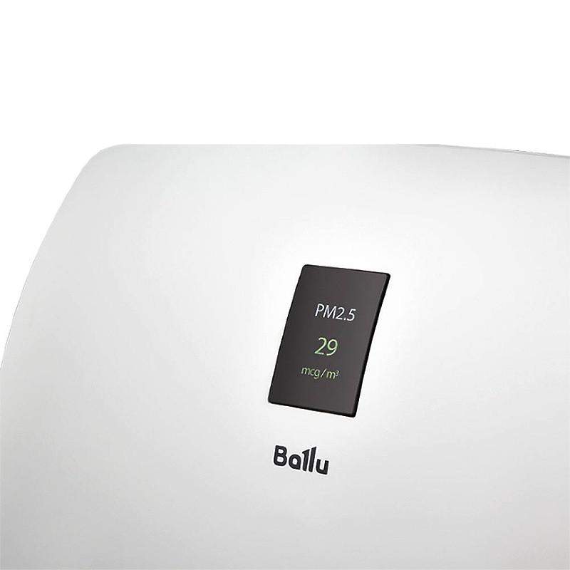 Ballu ONEAIR ASP-200SP – инверторный приточный очиститель воздуха с интеллектом. Предназначен для подачи свежего и очищенного воздуха в любые жилые помещения площадью до 75 кв.м. Встраиваемый высокоэффективный керамический нагревательный элемент мощностью 1200 Вт (опция, приобретается отдельно) подогревает входящий воздух. При этом прибор эффективно работает в осенне-зимний период при температуре наружного воздуха до -40С. Профессиональная система очистки воздуха, состоящая из 6 ступеней, устраняет 99,9% загрязнений в воздухе, поглощает неприятные запахи, обеззараживает от вирусов и бактерий. В приборе есть арома-капсула для масел, позволяющая создать индивидуальную атмосферу на любой вкус. Встроенный датчик РМ2,5 в зависимости от качества воздуха автоматически управляет интенсивностью очистки в режиме циркуляции. Датчик CO2 (опция) контролирует уровень углекислого газа в помещении и автоматически управляет клапаном притока, поддерживая оптимальный уровень CO2. Прибор имеет удобный интерфейс, который обеспечивают цветной дисплей и полифонический звуковой сигнал, встроенный Wi-Fi модуль для удаленного управления прибора с мобильных устройств, пульт ДУ в комплекте.