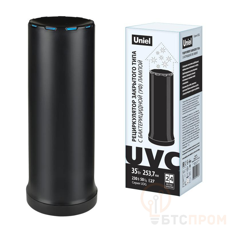 Рециркулятор настольный UDG-T30A UVCB BLACK закрыт. типа с бактерицидн. лампой E27 без озонирования 253.7нм черн. Uniel UL-00007696