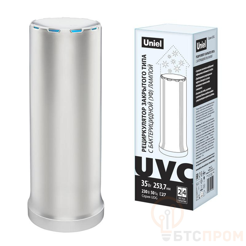 Рециркулятор настольный UDG-T30A UVCB WHITE закрыт. типа с бактерицидн. лампой E27 без озонирования 253.7нм бел. Uniel UL-00007695