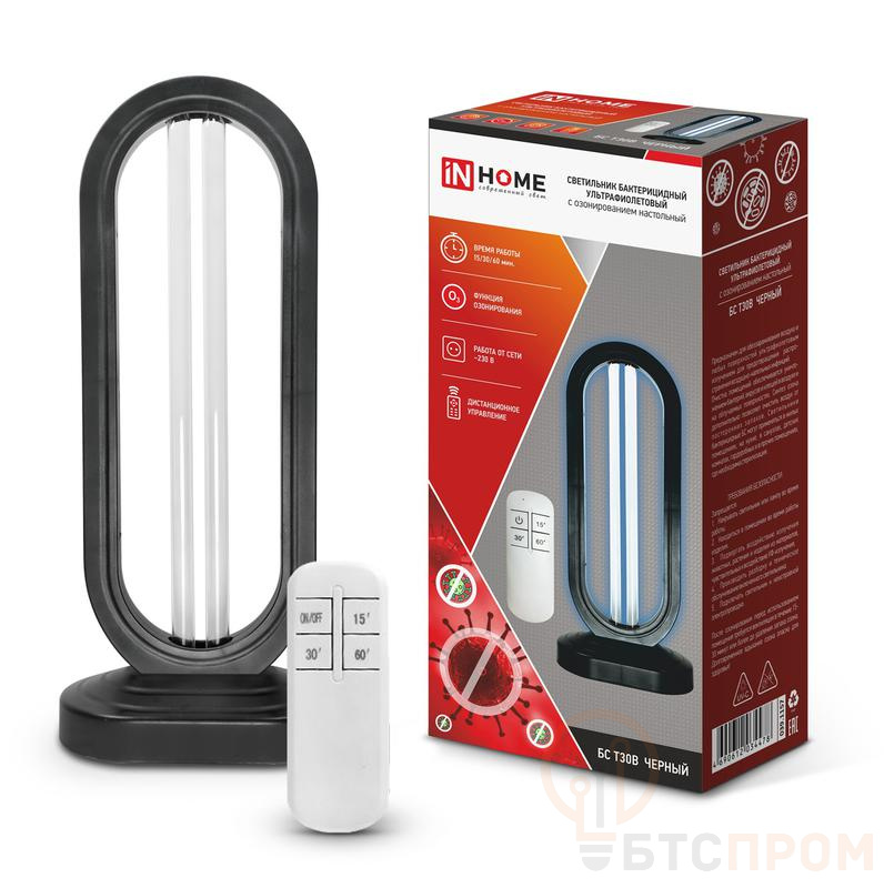 Светильник бактерицидный ультрафиолетовый с озонированием настольный БС Т30B 30Вт 230В с пультом ДУ черн. IN HOME 4690612034478