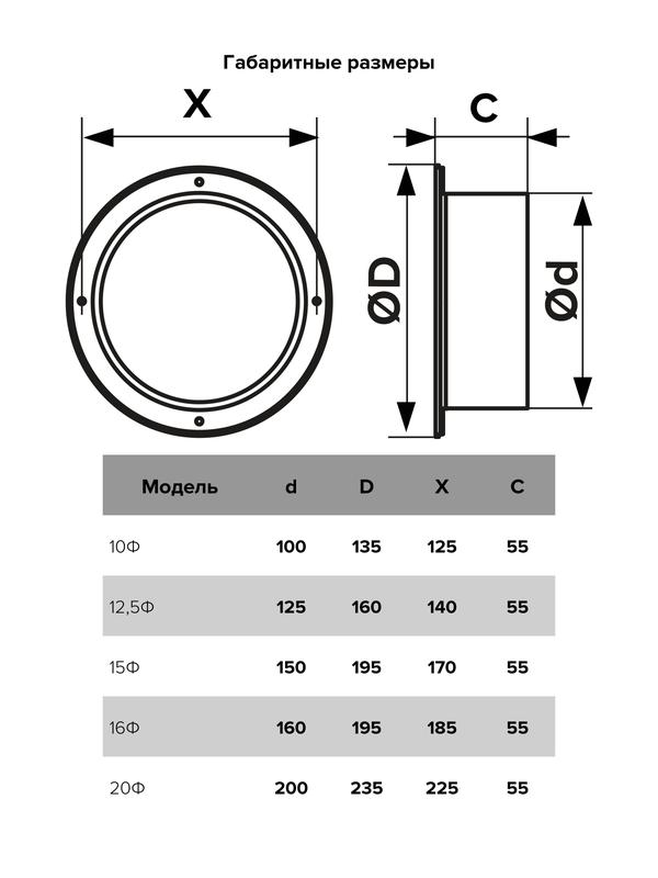 Фланцы Ф используются для присоединения воздухораспределителей без фланца к круглым воздуховодам соответствующего сечения. Крепление при помощи саморезов.