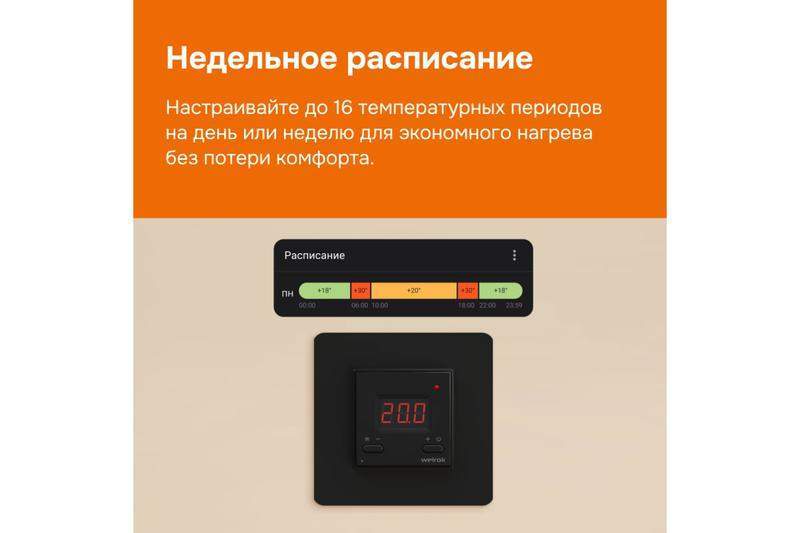 • Расписание нагрева. До 16 температурных периодов на каждый день