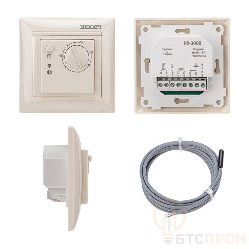 Механический термостат RX-308B от REXANT бежевого цвета обеспечивает регулировку температуры в диапазоне от +15°C до +45°C. Имеет высокую коммутационную способность контактов до 16 А (3500 Вт), что позволяет использовать его для управления большим количеством электроприборов. Одним из преимуществ механического термостата является наличие внешнего датчика температуры с сопротивлением 10 кОм. Это позволяет точнее контролировать температуру в помещении и обеспечить комфортную атмосферу. Термостат RX-308B подходит для использования в различных областях, включая домашнее и офисное применение. Легко устанавливается и прост в использовании. Терморегулятор совместим с электроустановочными средствами Legrand серии Valena.
