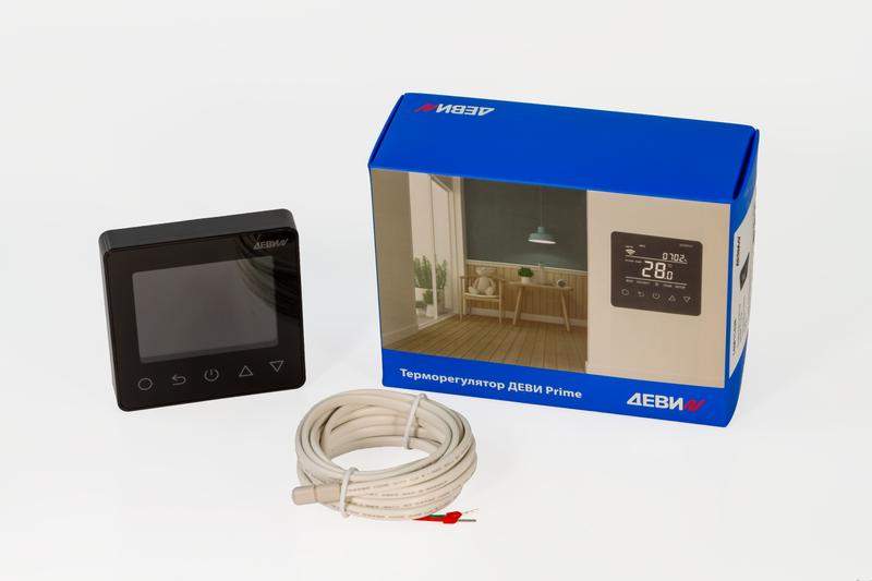 ДЕВИ Prime – это электронный программируемый терморегулятор со встроенным датчиком температуры воздуха и датчиком температуры пола на проводе с возможностью управления через Wi-Fi. Предназначен для управления электрическими системами комфортного подогрева пола или системами полного отопления помещений. С помощью приложения Warmme или Tuya Smart Life, установленного на смартфоне, можно задавать расписание работы системы, устанавливать различные температурные режимы и тем самым сокращать затраты на электроэнергию. Настройка возможна также с помощью сенсорных кнопок на терморегуляторе. Благодаря интеграции в программу умного дома Smart Life, поддерживает голосовое управление с помощью Amazon Alexa, Google Assistant и Яндекс Алиса. Терморегулятор предназначен только для стационарной установки внутри помещений. Терморегулятор имеет следующие особенности: ЖК дисплей с подсветкой и индикацией времени и дня недели; 4 периода работы на каждый день недели с возможностью установки температуры для каждого периода; функция адаптации (заблаговременное включение системы обогрева для достижения требуемой температуры к началу каждого периода времени); выбор датчика температуры (воздух/пол/воздух+пол); режим «в отъезде»; режим поддержания постоянной температуры; функция блокировки кнопок от случайного нажатия; учет энергопотребления (в приложении); ограничение температуры пола; интеграция с системой «умный дом»; встроенная система контроля исправности датчика температуры воздуха и датчика температуры пола.