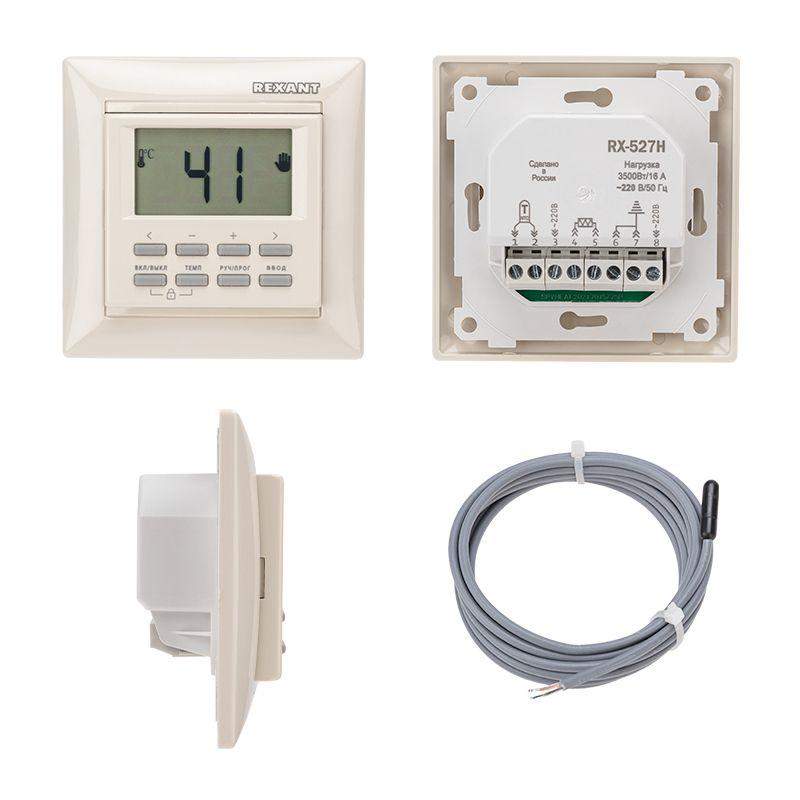 Цифровой терморегулятор REXANT бежевого цвета предназначен для совместного использования с системами индивидуального электрического отопления: пленочными и кабельными теплыми полами, нагревательными матами, инфракрасными нагревателями и конвекторами без регулятора. Позволяет устанавливать комфортную температуру от +5 до +40 градусов в помещении и поддерживать ее, а также задавать временные интервалы включения и выключения. Возможно планирование до 6 событий в сутки на 7 дней вперед. Такой подход позволяет значительно снизить энергопотребление и затраты на него. Для удобства термостат снабжен кнопками управления, графическим дисплеем с подсветкой, функцией "часы" и "календарь". Точность срабатывания гарантируют сразу 2 термодатчика, которые контролируют температуру воздуха и пола (длина шнура выносного датчика 2,5 м). Терморегулятор совместим с электроустановочными средствами Legrand серии Valena.