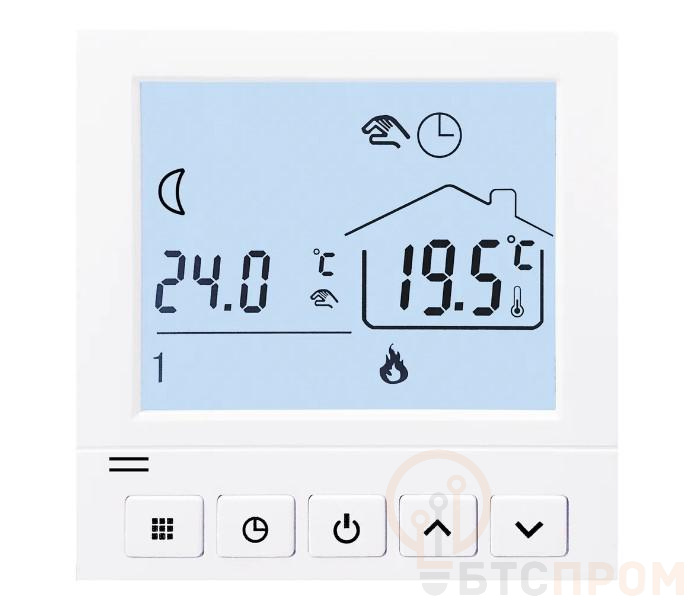 Оснащен ЖК-дисплеем и возможностью еженедельного программирования. Позволяет установить до 4 периодов работы в день с настраиваемыми временем и температурой. Идеально подходит для управления различными системами обогрева и поддержания заданной температуры во всем помещении.