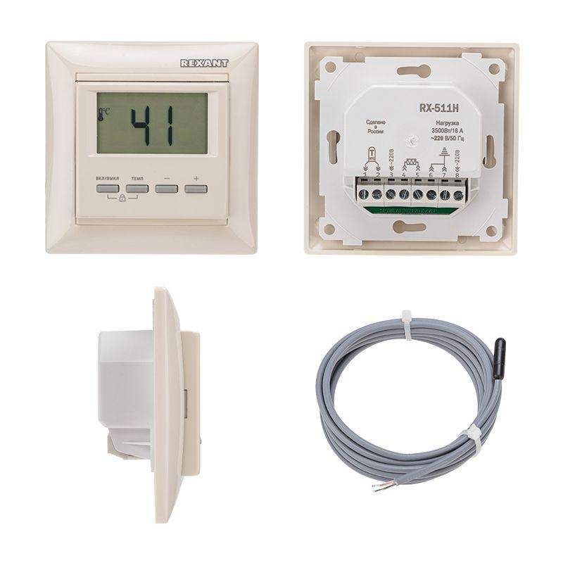 Цифровой терморегулятор RX-511H REXANT бежевого цвета разработан для точного контроля температуры пола с максимальной нагрузкой 3500Вт/16А. Он отличается высоким качеством и надежностью, а также выполнен в строгом и минималистичном дизайне. Обеспечивает регулировку температуры в диапазоне от +5°C до +40°C Степень защиты IP20 подразумевает использование изделия в сухих отапливаемых помещениях. Одним из преимуществ является наличие внешнего датчика температуры с сопротивлением 10 кОм. Принцип работы заключается в регулировке температуры пола с помощью электронной системы. Он обеспечивает комфортную температуру в помещении благодаря своей высокой точности и надежности. Терморегулятор совместим с электроустановочными средствами Legrand серии Valena.