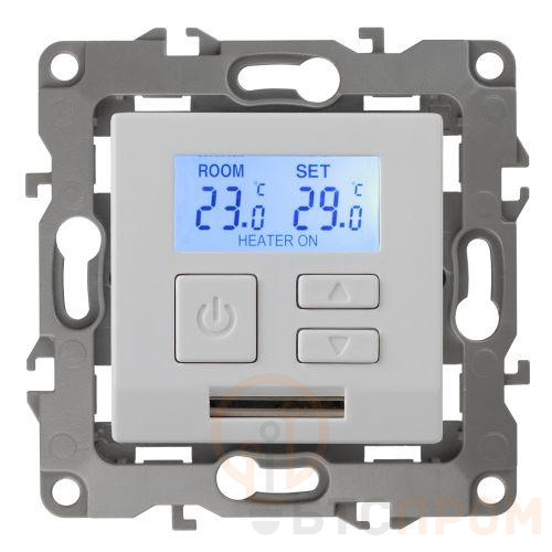 Терморегулятор теплый пол / отопление электронный серии Эра 12 СУ механизм цвет белый 12-4111-01. Номинальные характеристики 16А 230В. Сделана из поликарбоната. Монтаж в подрозетник производится и на лапки, и на винты. Рамки приобретаются отдельно. Рамки Эра 12: 1 пост 12-5001-хх, 2 поста 12-5002-хх, 3 поста 12-5003-хх, 4 поста 12-5004-хх, 5 постов 12-5005-хх. Рамки Эра 12 Сатин: 1 пост 12-5101-хх, 2 поста 12-5102-хх, 3 поста 12-5103-хх, 4 поста 12-5104-хх, 5 постов - 12-5105-хх (хх - код цвета: 01-белый, 02-слоновая кость, 03-алюминий, 04-шампань, 05-антрацит, 06-чёрный, 07-ольха(белёный дуб-сатин), 08-вишня, 09-дуб, 10-венге, 11-сосна, 21-жёлтый, 22-оранжевый, 23-красный, 24-охра, 25-бордо, 26-лайм, 27-зелёный, 28-голубой, 29-синий).