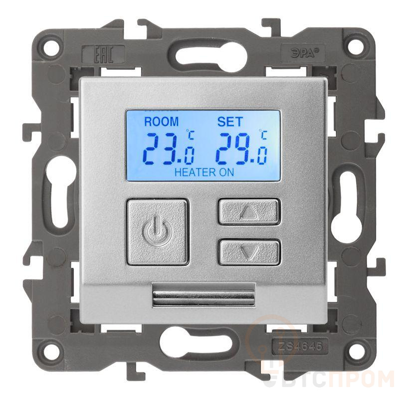 Терморегулятор теплый пол / отопление электронный серии Эра Elegance цвет алюминий 14-4111-03. Рамки приобретаются отдельно. Рамки Эра Elegance ПЛАСТИК: 1 пост 14-5001-хх, 2 поста 14-5002-хх, 3 поста 14-5003-хх, 4 поста 14-5004-хх, 5 постов 14-5005-хх; СТЕКЛО: 1 пост 14-5101-хх, 2 поста 14-5102-хх, 3 поста 14-5103-хх, 4 поста 14-5104-хх; МЕТАЛЛ: 1 пост 14-5201-хх, 2 поста 14-5202-хх, 3 поста 14-5203-хх, 4 поста 14-5204-хх; ДЕРЕВО: 1 пост 14-5301-хх, 2 поста 14-5302-хх, 3 поста 14-5303-хх, 4 поста 14-5304-хх (хх - код цвета: 00-прозрачный, 01-белый, белёный дуб, 02-слоновая кость, 03-алюминий, 04-шампань, 05-чёрный, чёрное дерево, 07-ясень, 09-дуб, 10-венге, 11-клён, 14-медь, 21-жёлтый, 22-оранжевый, 23-красный, 25-бордо, 26-лайм, 27-зелёный, 28-голубой, 29-синий, 30-розовый, 31-мокко, 32-серый, 41-сталь, 42-титан).
