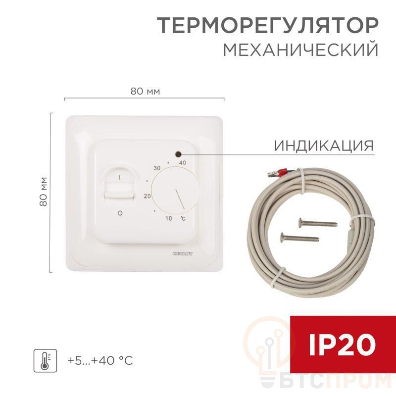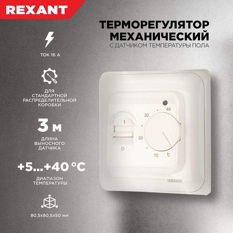 Термостат механический R70XT (OTN-1991; RTC 70.26; MST-1; MT-26; MTT-2; M5.713) 16А 3.6кВт для теплых полов датчик пола бел. Rexant 51-0531