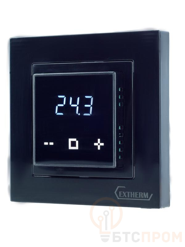 Термостат програмируемый с сенсорными кнопками и датчиком темпер. пола без расписания совместим с рамками с внутрен. размером 56х56мм Schneider Unica Exxact и Legrand Valena черн. Extherm ET-43(b)