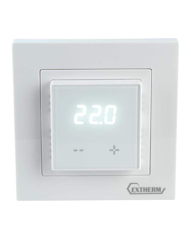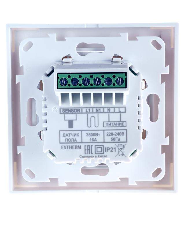 Термостат програмируемый с сенсорными кнопками и датчиком темпер. пола без расписания совместим с рамками с внутрен. размером 56х56мм Schneider Unica Exxact и Legrand Valena бел. Extherm ET-43(w)