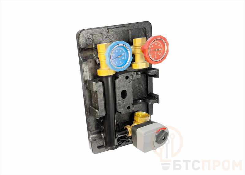 Изделие предназначено для распределения теплоносителя по контурам, регулировки температуры и расхода в зависимости от сигналов от термостатов. Сервопривод обеспечивает плавное и точное управление, поддерживая комфортный микроклимат. Благодаря компактному исполнению и заводской готовности, монтаж значительно упрощается и ускоряется. Группа применяется в современных двухтрубных системах отопления, в узлах смешения и в системах «теплый пол».