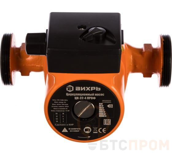 МОЩНОСТЬ, ВТ - 72 ТИП - Центробежный, поверхностный, вертикальный НАПРЯЖЕНИЕ СЕТИ, В - 220 ЧАСТОТА, ГЦ - 50 ДАВЛЕНИЕ, БАР - 10 — 10 МАКС. ПРОИЗВОДИТЕЛЬНОСТЬ, Л/Ч - 3000 ГАБАРИТЫ, СМ - 25 х 15 х 15 ВЕС В УПАКОВКЕ - 4.5 кг ПИТАНИЕ - От электросети КЛАСС ЗАЩИТЫ - IP44 КОМПЛЕКТАЦИЯ - Циркуляционный насос – 1 шт. Сгон с накидной гайкой – 2 шт. Резиновые прокладки – 2 шт. Паспорт – 1 шт. Упаковка – 1 шт. МАТЕРИАЛ - Алюминий ВЫСОТА НАПОРА, М - 4 КАЧЕСТВО ВОДЫ - Чистая Циркуляционный насос ВИХРЬ ЦН-32-4 предназначен для обеспечения циркуляции воды в системах отопления, круговых трубопроводах горячего и холодного водоснабжения, центральных отопительных установках и системах перекачки промышленных вод (системах кондиционирования, охлаждения). Насос представляет собой компактное устройство с всасывающей и нагнетающей функциями. Вода перекачивается при помощи вращения рабочего колеса электродвигателем насоса. Данный вид насосов надёжен, экономичен и прост в использовании. Преимущества: бесшумная работа, установка непосредственно на трубопроводе, малые габаритные размеры, большой срок эксплуатации, регулировка скорости перекачки жидкости. Крышка насоса изготовлена из чугуна, рабочее колесо из полимерных материалов, корпус электродвигателя из алюминия. Насос имеет три скорости работы, выбираемые ручным переключением вращающейся ручки на клеммной коробке. Охлаждение и смазка керамических подшипников осуществляется перекачиваемой жидкостью. Заглушка ротора позволяет удалять остатки воздуха из системы путём её откручивания и стравливания воздуха. В комплектацию не входит кабель подключения к сети. Следует использовать термостойкий трехжильный кабель с поперечным сечением каждой жилы не менее 0,75 мм2 и с резиновой изоляцией.