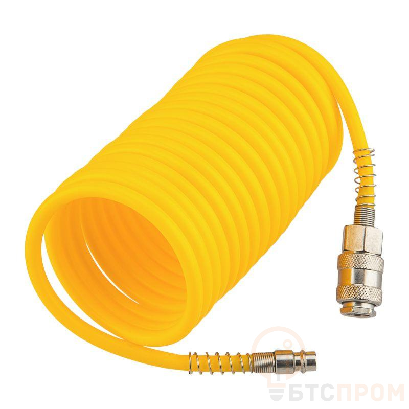 Спиральный шланг длиной 5 м предназначен для соединения компрессора с различными пневматическими инструментами. Изготовлен из высококачественного полиуретана в форме спирали, благодаря чему отличается устойчивостью к низким температурам, эластичностью, а также повышенной стойкостью к истиранию и перекручиванию. Шланг оснащен быстросъемными штуцерами, которые обеспечивают легкое присоединение и надежное крепление.