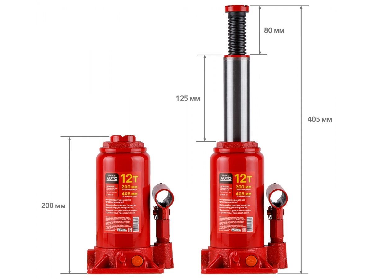 Домкрат гидравлический 12т бутылочный 200-405мм STARTUL AUTO (ST8018-12) (h min 200мм, h max 405мм) ST8018-12