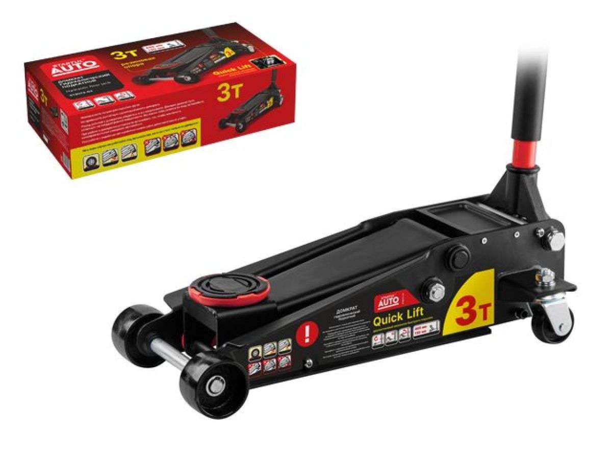 Оснащение: резиновая опора (для защиты груза и самого домкрата от механических повреждений), предохранительный клапан (для защиты от перегрузки), лоток для болтов и гаек, прорезиненная рукоять;