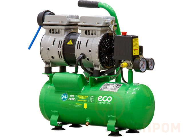 Компрессор ECO AE-10-OF1 безмасляный (120 л/мин, 8 атм, коаксиальный, безмасляный, ресив. 10 л, 220 В, 0,7 кВт) AE-10-OF1