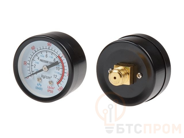Манометр для компрессора ЕСО, резьба 1/4" (Резьба - 1/4", металлический корпус, Давление - 0-12 бар) (ECO) AES-14PG