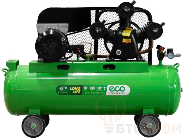 Компрессор ECO AE-1003-B70 ременной (580 л/мин, 8 атм, ременной, масляный, ресив. 100 л, 230 В, 3.00 кВт) EC2610-0