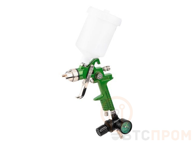 Краскораспылитель HVLP с набором регулировок. Регулятор с манометром в комплекте позволяет настроить работу краскораспылителя максимально точно.