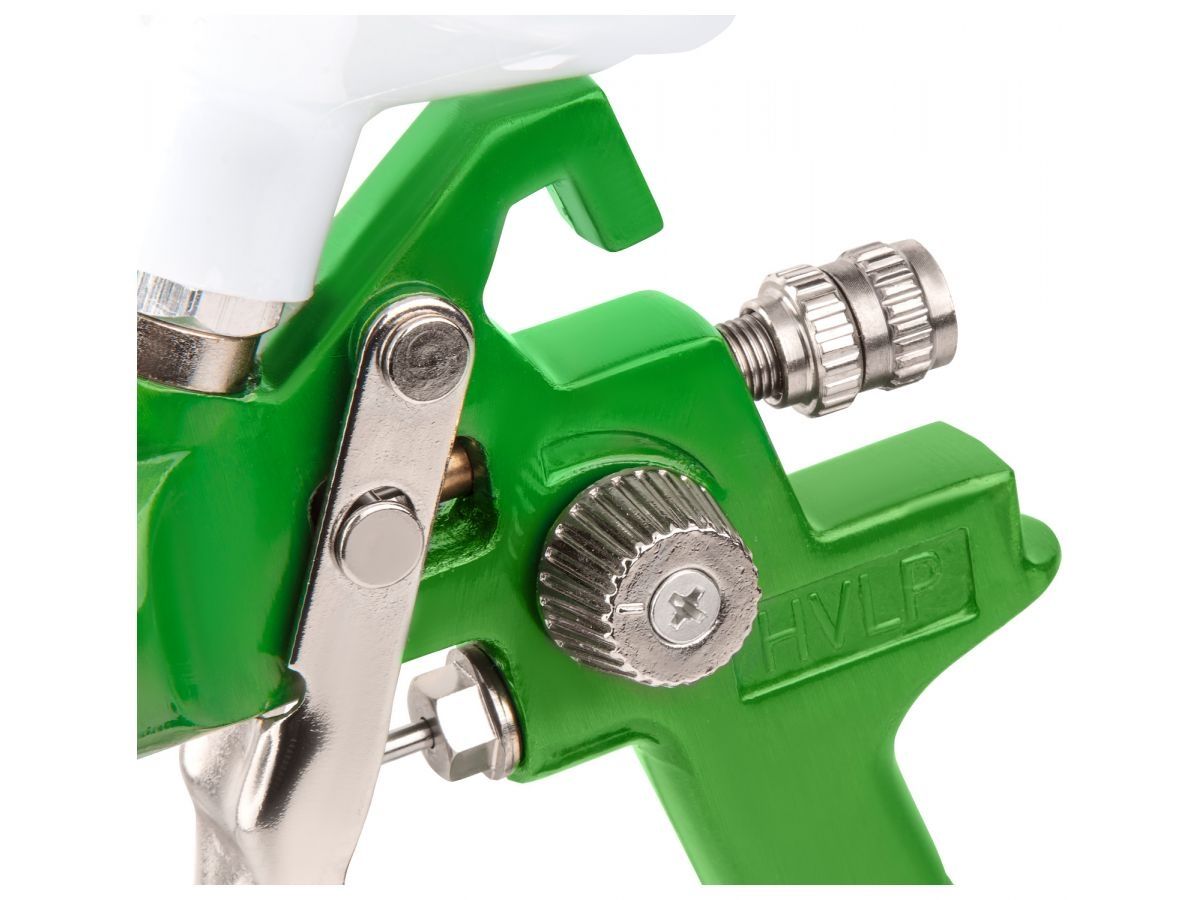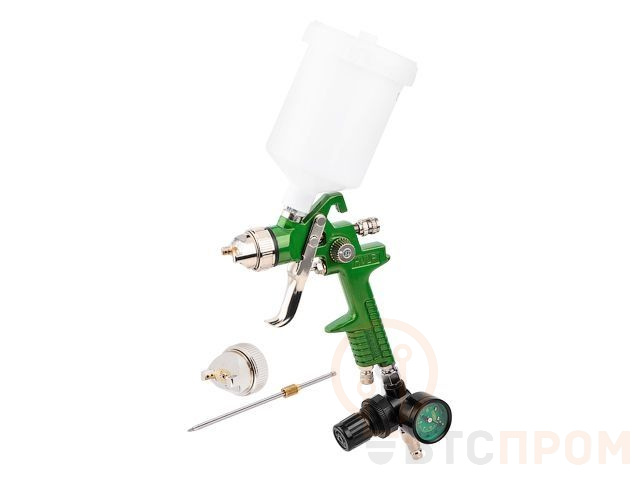 Краскораспылитель HVLP 2-в-1 для нанесения грунта и эмали. В комплекте идет 2 сопла - 1.4 и 1.7 мм. Регулятор с манометром в комплекте позволяет настроить работу краскораспылителя максимально точно.