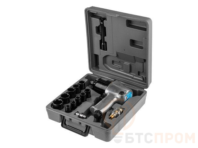 Пневмогайковерт 1/2" DGM DTW-7012 с лубрикатором и головками (580 Нм, Ударный мех-м: twin hammer, 7000 об/мин, Макс.резьба: М18, 220 л/мин,) DTW-7012