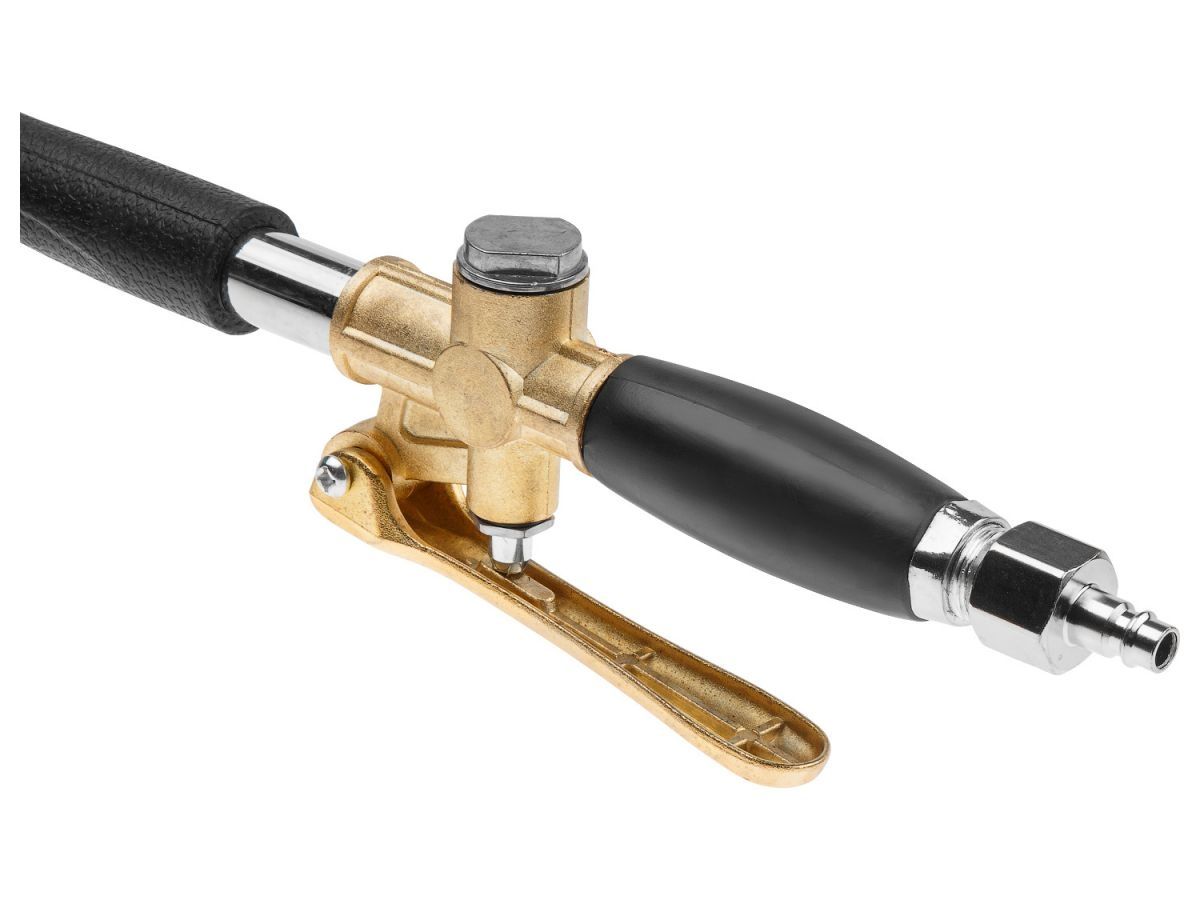 В комплекте имеется быстросъемный штуцер для удобства подключения к стандартным шлангам, но для достижения максимальной производительности рекомендуется использовать соединение елочка и шланг с внутренним сечением 16 мм.