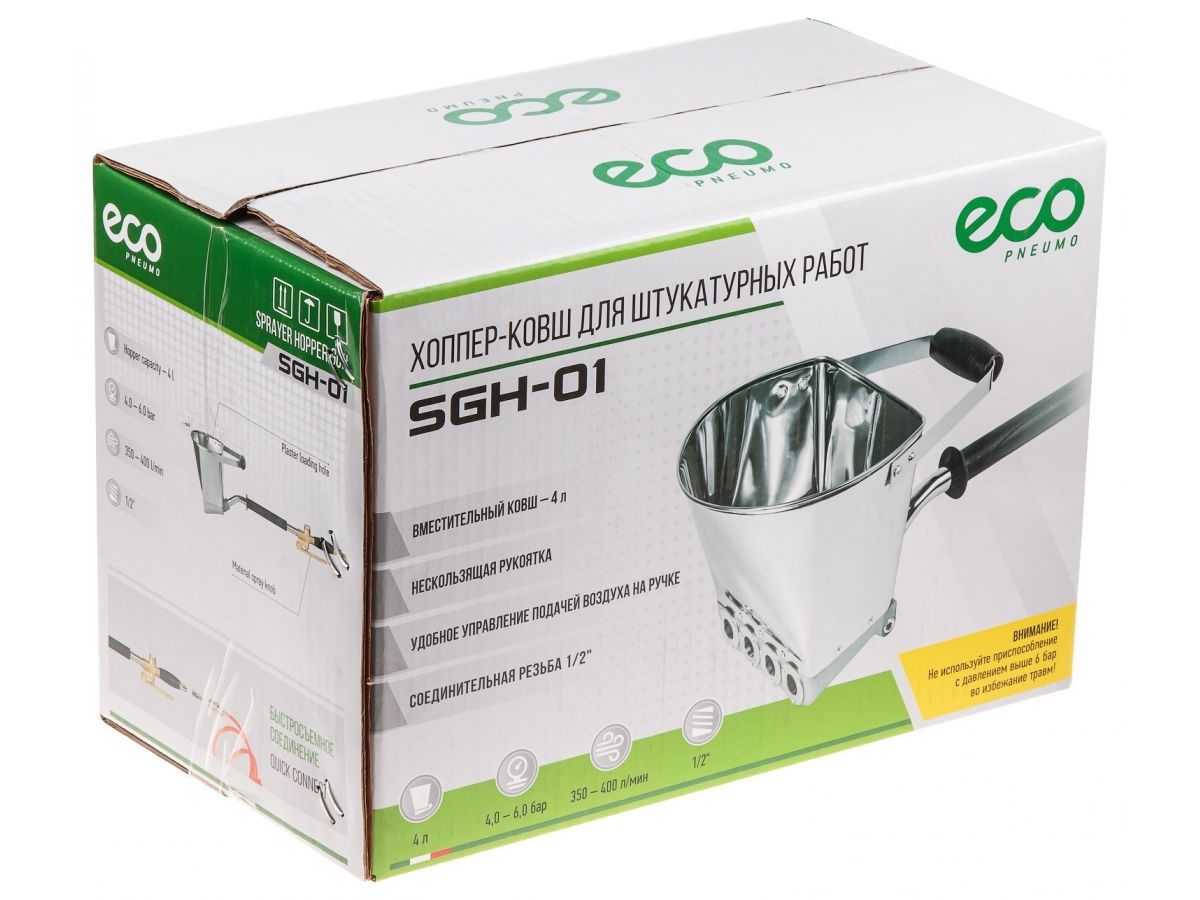 Приспособление для штукатурных работ (хоппер-ковш) ECO SGH-01 (нанесение строительных смесей, 4 сопла, 4-6 бар, 4 л, 1/2") EC1538-1
