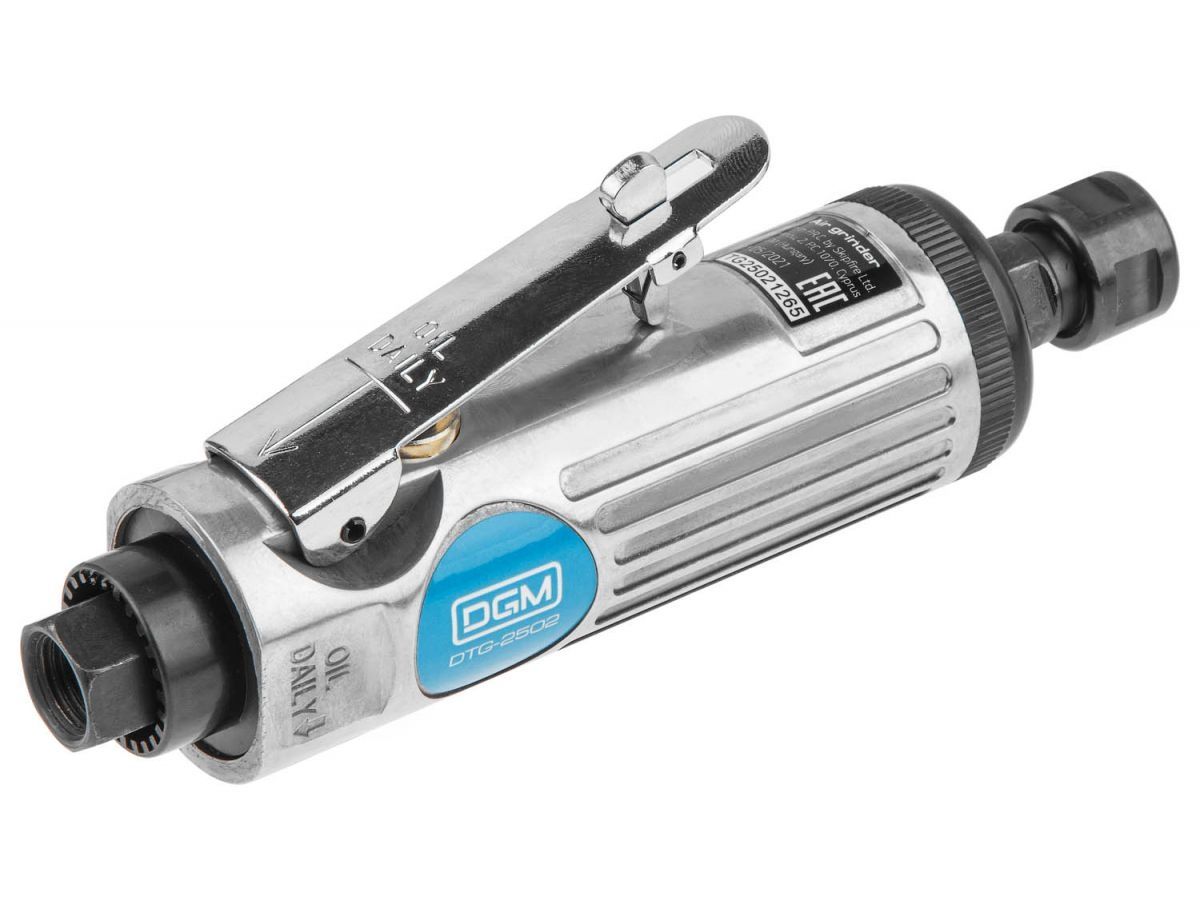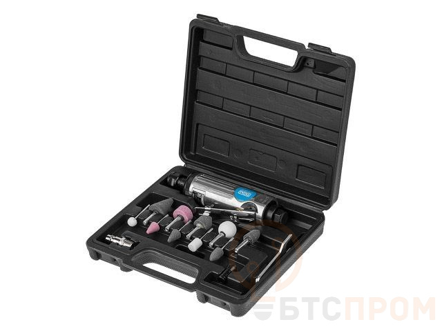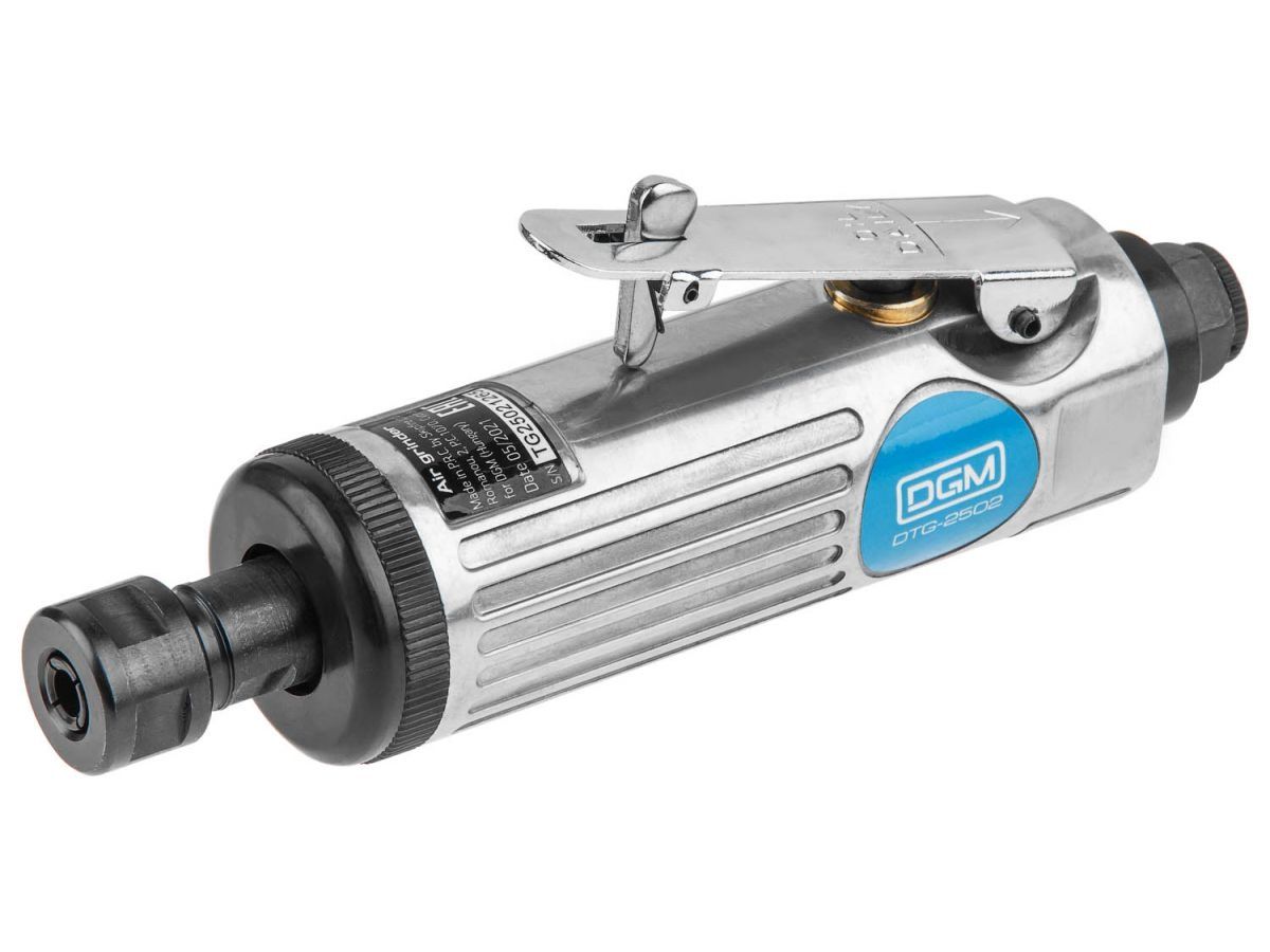 Пневмошлифмашина прямая DGM DTG-2502 с набором шарошек (25000 об/мин, 115 л/мин, Цанги:3 мм/6 мм, 10 шлифкамней, Чемодан) DTG-2502