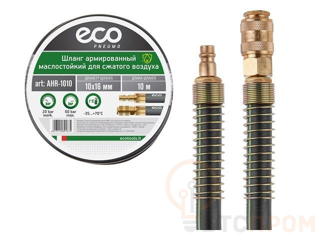 Шланг армированный маслостойкий ф 10/16 мм с быстросъемн. соед. ECO (длина 10 м) (толщ.стенки: 3 мм) AHR-1010