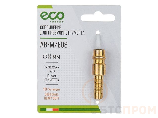 Соединение быстросъем. ПАПА х елочка 8 мм (латунь) ECO AB-M/E08 фото в каталоге от BTSprom.by