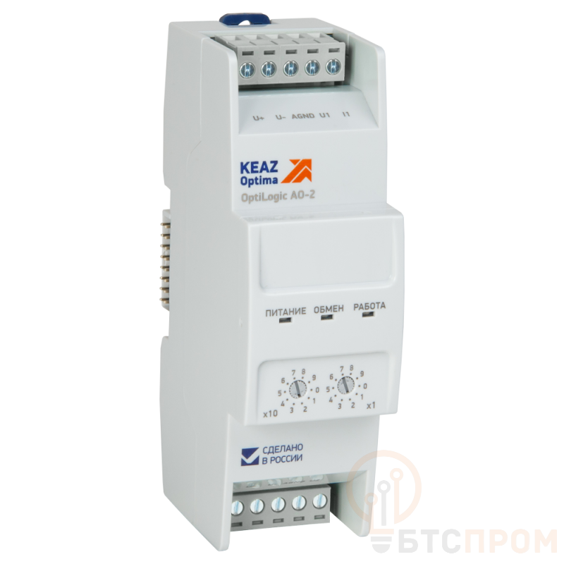 Универсальный двухканальный модуль вывода аналоговых сигналов. Является источником универсальных сигналов: 4-20 мА и 0-5 В. Поддерживает «горячую замену». Удобные клеммники обеспечивают простоту подключения. Адрес Modbus устанавливается микропереключателями на передней панели устройства. Скорость передачи данных по внутренней шине – 1 Мбит/с. Модуль может использоваться как отдельное Modbus-устройство при условии подключения через модуль расширения шины OptiLogic L-BE-1. Рабочий температурный диапазон – от -40оС до +55 оС. Встроенное ПО поставляется в составе оборудования и отдельно не продается.