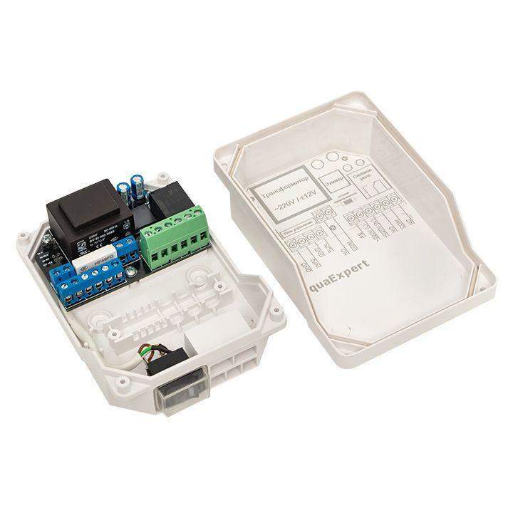 Модуль управления AquaExpert производства EKF серии PROxima предназначен для контроля состояния подключенных к нему датчиков протечки воды, управления шаровыми электроприводами, насосом и выдачи звукового оповещения об аварии. При попадании воды на электроды датчика протечки, подключенного к данному модулю управления, происходит автоматическое перекрытие подачи.