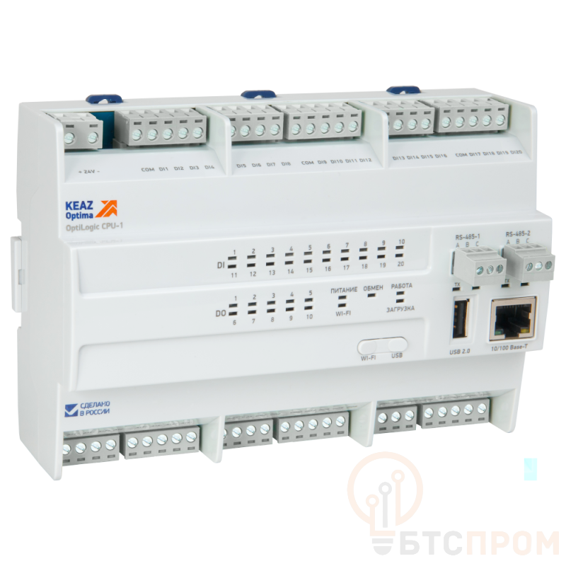 OptiLogic L-CPU-1-M является производительным ПЛК для построения малых, средних и распределенных автоматизированных систем управления. Поддерживает до 1024 каналов ввода-вывода. Оснащен энергонезависимыми часами реального времени (RTC) и аппаратным сторожевым таймером (watchdog). Центральный процессор основан на ядре ARM Cortex-A5, рабочая частота составляет 536 МГц, объем оперативной памяти 256 Мб, памяти приложений и данных – 256 Мб. В состав OptiLogic L-CPU-1-M входит 20 дискретных входов, 10 дискретных выходов (8 транзисторных + 2 релейных), 4 аналоговых входа (универсальные сигналы) и 2 аналоговых выхода. Дискретные входы гальванически изолированы и могут работать в режимах «вход», «триггер» и «счетчик». Модули расширения (ввода-вывода) подключаются к процессорному модулю через единый шинный разъем. Поддерживает до 64 модулей расширения. Скорость передачи данных по шине – 1 Мбит/с. Реализована «горячая замена» модулей расширения – без прерывания работы системы в целом. OptiLogic L-CPU-1-M оснащен двумя последовательными портами RS-485 и портом Ethernet, модулем Wi-Fi, USB-хостом и слотом для карты памяти формата microSD. Рабочий температурный диапазон – от -40 С до +55 С. Поставляется с Softlogic-системой MasterSCADA 4D. Встроенное ПО поставляется в составе оборудования и отдельно не продается.