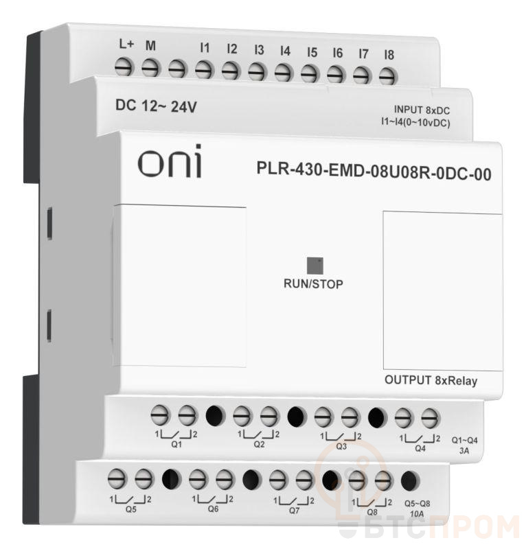 Модуль расширения входов выходов ПЛК 430 4 DI 4 UI (0-10В/DI) 8 RO 24В DC ONI PLR-430-EMD-08U08R-0DC-00