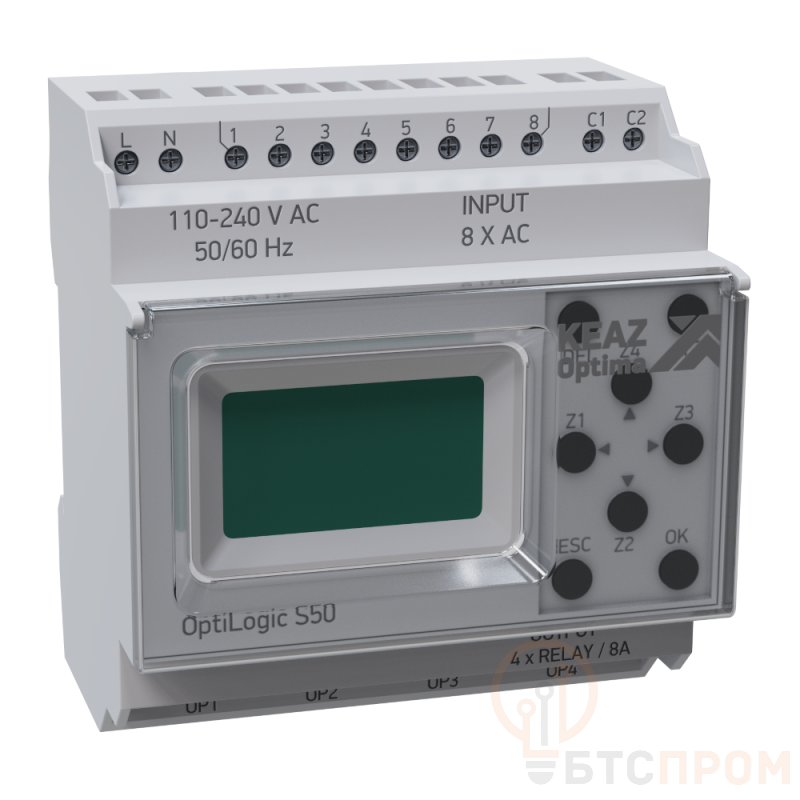Модуль процессорный OptiLogic S50-CPU предназначен для управления простыми системами автоматизации по заранее предустановленному алгоритму. Алгоритм управления задаётся пользователем в среде разработки KEAZ Logic S50 на персональном компьютере и загружается пользователем в процессорный модуль при помощи кабеля OptiLogic S50-USB. Также пользователю доступен каталог готовых решений АВР на базе линейки OptiLogic S50. Он включает в себя схемы подключения, спецификации, готовые программы в среде разработки KEAZ Logic S50.