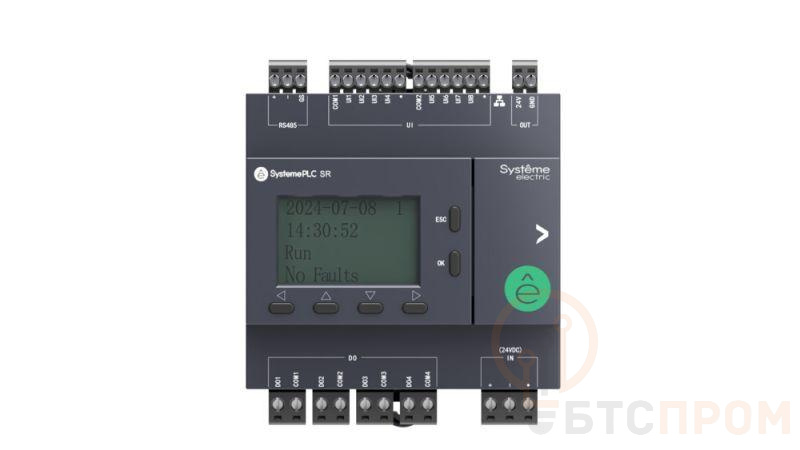 Интеллектуальное реле серии SystemePLC типа SR2. Сбалансированное решение для производителей машин. Напряжение питания: 24 VDC. Потребляемая мощность: не более 10 Ватт (0,5 А). Общее количество входов/выходов - 12. 12 IO: 8 универсальных входов (аналоговых или дискретных), 4 дискретных выхода (2 реле, 3 A и 2 транзисторных). Коммуникационные порты: 1xRS485; 1xRJ45; 1хUSB (Type C). Коммуникационные протоколы: Modbus RTU ведущий/ведомый; Modbus TCP. ЖК-дисплей 1.8", 4x16 символов. Возможность расширения: да, до 7 модулей ввода/вывода серии SystemePLC S172. Объем памяти: 2 МБ (Флэш-память) и 512 кБ ОЗУ. Совместимость с пластроном: есть, глубина пластрона от 46 мм. Степень защиты: IP20. Габаритные размеры: 85x80x58. Температура эксплуатации: -20 - 55 °С.