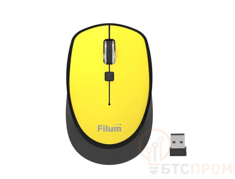 Мышь беспроводная оптическая 4-кл. 2.4ГГц USB DPI: 800/1200/1600 Windows XP/Vista/7/8/10 MacOS питание AA 1шт желт. Filum FL-MW10-YW