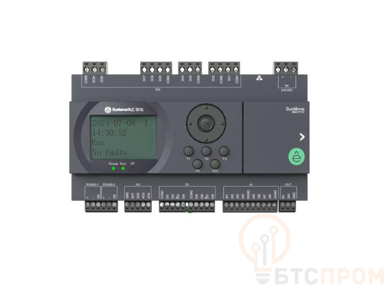 Контроллер логический программируемый S172 24В DC дисплей 28 IO: 8 DI; 8 DO (реле); 8 AI; 4 AO 2хRS485 1хRJ45 SE SM172PS11BDR