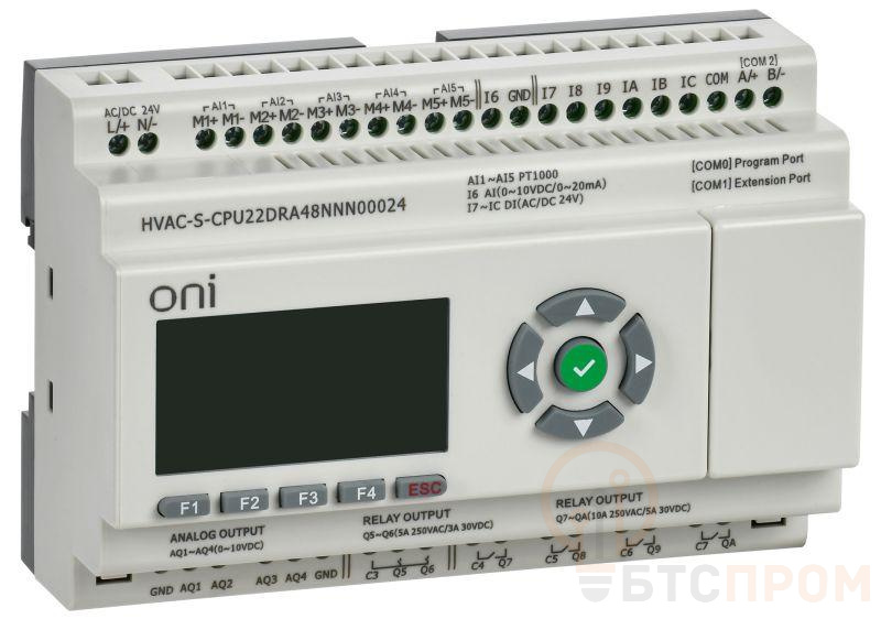 Контроллер программируемый логический HVAC S ЦПУ 8DI 8DO 1AI 4PT 2AO LED дисплей RS485 24В DC ONI HVAC-S-CPU22DRA48NNN00024