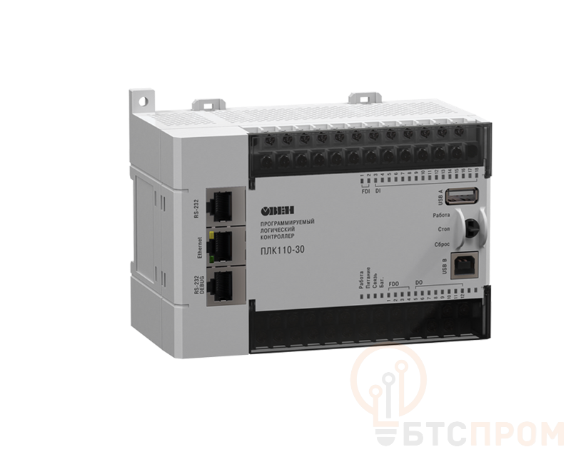 Программируемый логический контроллер ОВЕН ПЛК110-220.60.К-М – это компактное и мощное устройство для автоматизации технологических процессов. Модель оснащена 10 дискретными входами (7 из которых могут использоваться как аналоговые) и 6 дискретными выходами с релейными ключами, что позволяет гибко взаимодействовать с датчиками и исполнительными механизмами. Питание контроллера осуществляется от сети переменного тока 220 В.
